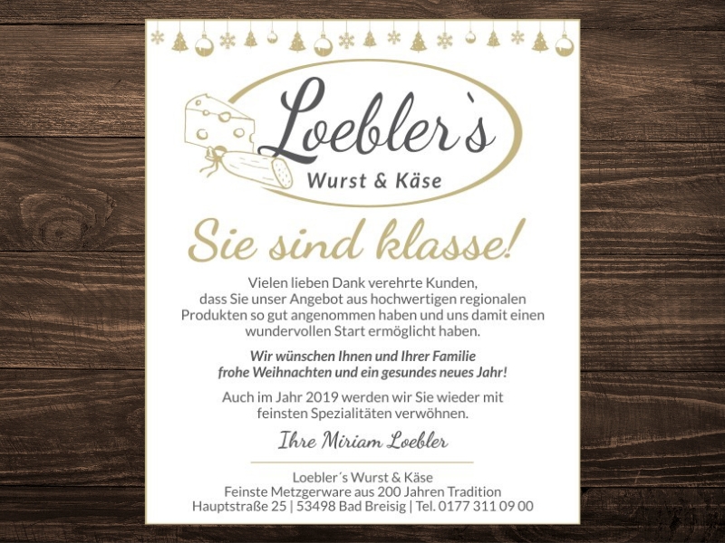 Bei Loebler’s Wurst & Käse in Oberbreisig wurde Fleisch- und Wurstwaren sowie Käse angeboten – auf Bio-Standard und aus der Region, nämlich von Höfen aus der Eifel und dem Westerwald.
